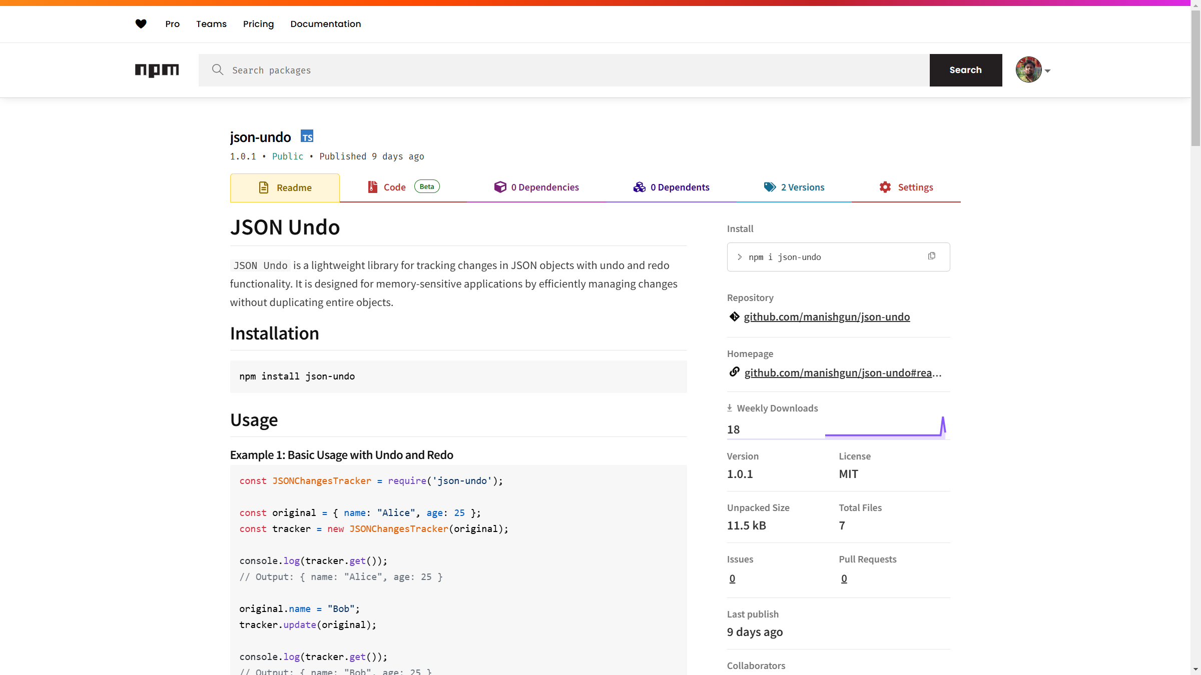 JSON Undo is a lightweight library for tracking changes in JSON objects with undo and redo functionality. It is designed for memory-sensitive applications by efficiently managing changes without duplicating entire objects.